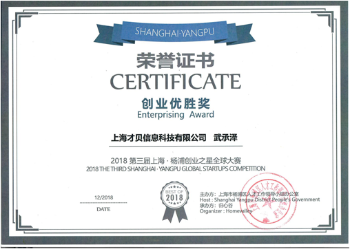 上海市楊浦區(qū)創(chuàng)業(yè)之星優(yōu)勝獎(jiǎng)